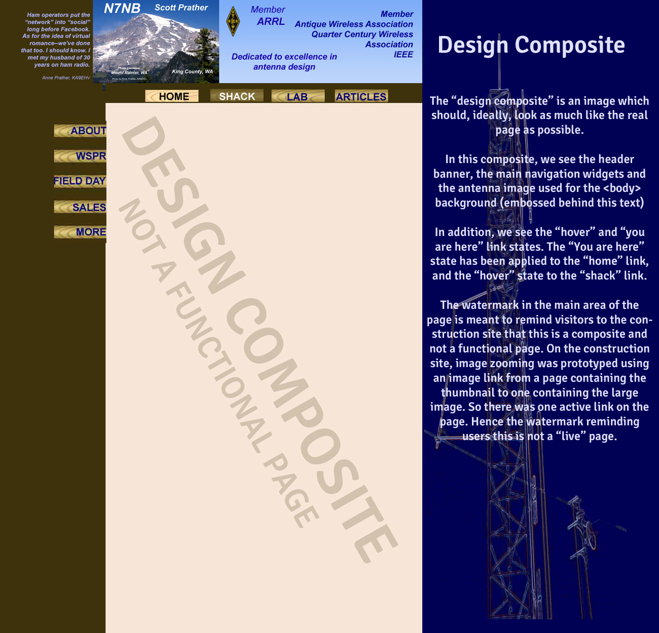 The goal of the design composite is to look as much like the proposed page as possible. In the comps for this site, I actually wrote text for the comp and made a link to show how the zoom feature would work. In fact, the actual code for the zoom feature is based on exactly what I did in the comp to mock up the feature.